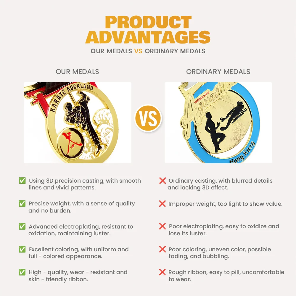 Quality is our top priority. We have strict quality control processes in place at every stage of production, from design to fina linspection. Each medal is carefully crafted and inspected to ensure it meets our high standards of quality and excellence.