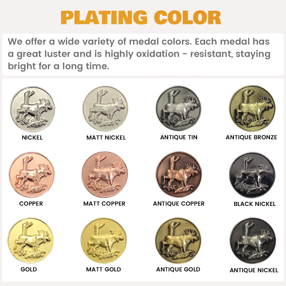 We offer a wide range of customization options, including various shapes,sizes, colors, and finishes. You can also choose from different materials like gold, silver, bronze, or custom coatings.Additionally, we provide options for personalized engravings, logos, and custom designs to match your specific needs.